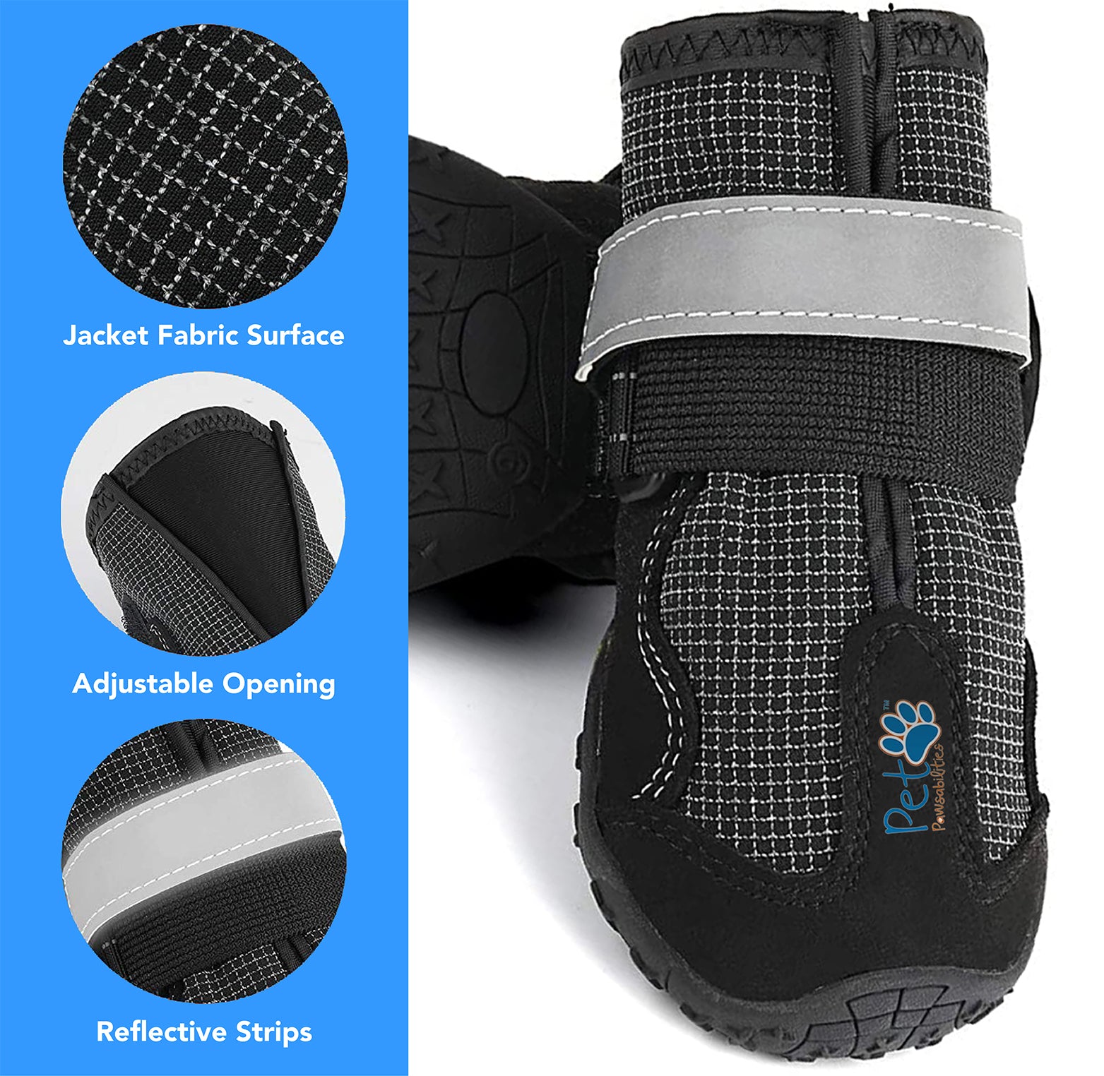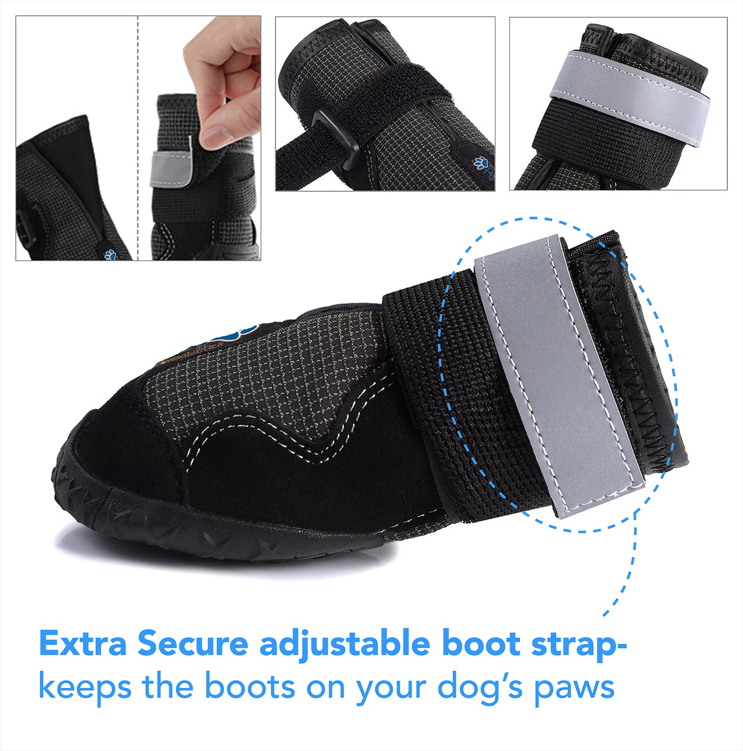 Durable Waterproof Dog Shoes, Extra Secure, Anti-Slip with Reflective Strap (Set of 4)
