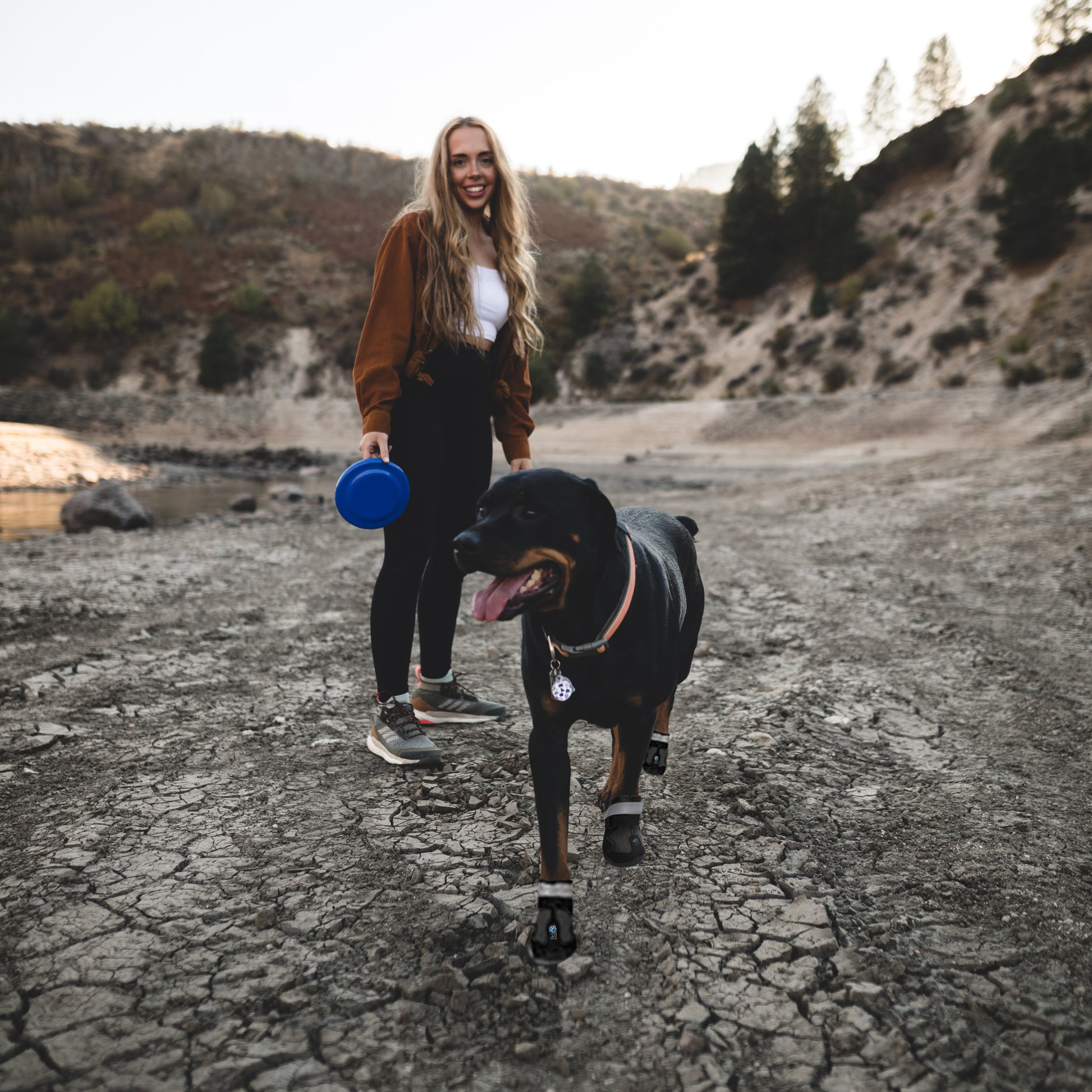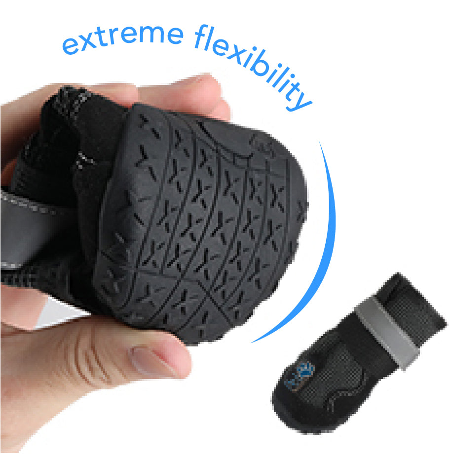 The Pet Pawsabilities™ dog shoes are designed for ALL seasons. Whether you and your dog are hiking in the hot sun or strolling for a walk in the snow, your dog's paws are protected with our durable dog boots. Our dog shoes are also designed with an extra secure reflective strap to keep them from falling off your dog's paws and to keep visibility in the dark.