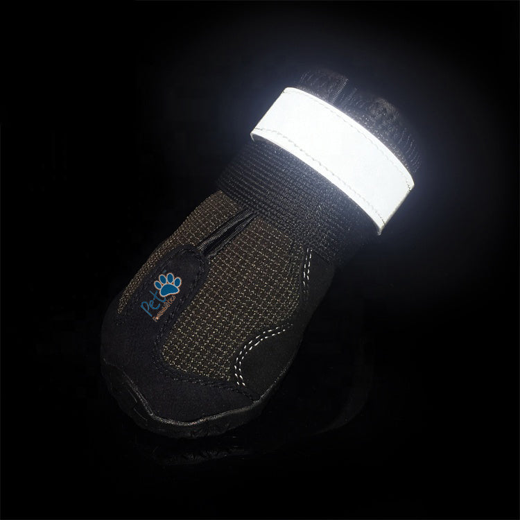 Our waterproof dog shoes are designed with reflective straps to keep your dog visible and safe at night.